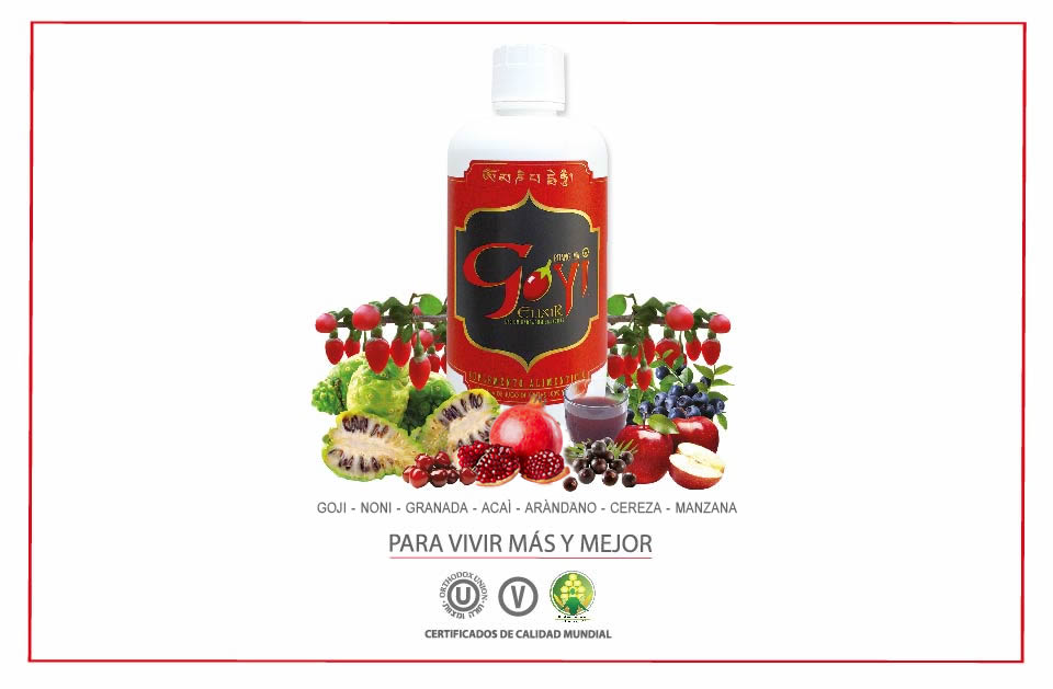 INGREDIENTES: GOJI EL FRUTO CON MÁS NUTRIENTES Y ANTIOXIDANTES EN EL MUNDO, NONI, MANGOSTÁN, ACAÍ, ARÁNDANO, CEREZA Y MANZANAPODEROSA FÓRMULA CON 7 FRUTOS DEL SOL, ORGÁNICOS Y EXÓTICOS 100% NATURAL QUE AYUDARÁ A TU CUERPO A LIBERAR TODA SU CAPACIDAD DE AUTOCURACIÓN PROPORCIONÁNDOLE MÁS DE 3,500 BIOACTIVIDADES AL ORGANISMO PREVINIÉNDOLO DE MUCHAS ENFERMEDADES PARA QUE GOCES DE UNA VIDA MÁS LONGEVA, SALUDABLE Y LLENA DE VITALIDAD.